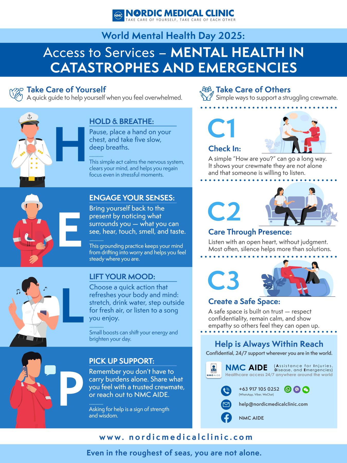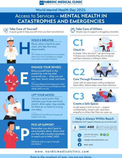 Mental health is an essential part of overall well-being—it affects how we think, feel, and act in everyday life. Factors such as stress, sleep, relationships, work environment, and self-care habits all play a role in maintaining balance. Learn more about the signs, challenges, and strategies that support mental resilience and emotional wellness—onshore and at sea.